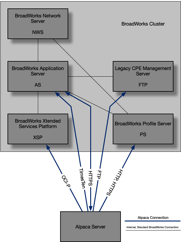Alpaca does not have access to the BroadWorks credentials for the User within this model. Due to this Alpaca needs to be a trusted host in the external authentication access control list on both the BroadWorks XSP and Application server.